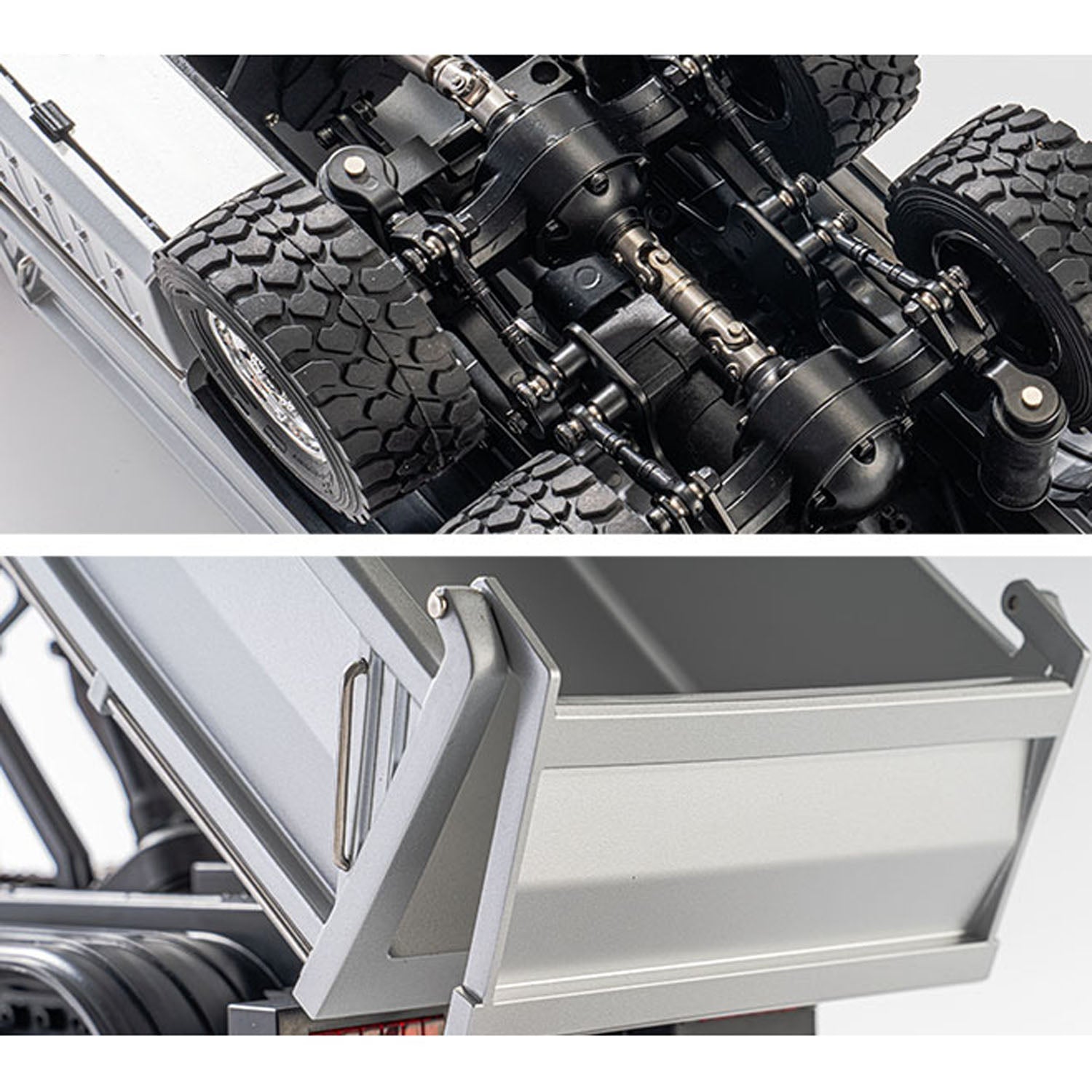 2, It is equipped with three power axles, a metal differential, and a transmission shaft imitating that of a real car, connected by bearings, which provides better off - road load capacity.