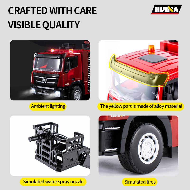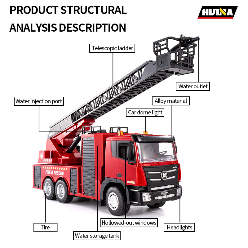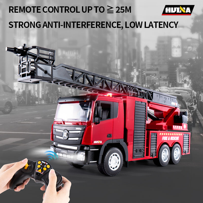 HUINA 1361 1/18 RC Aerial Ladder Fire Truck 9CH Remote Control Spray Car Fire Vehicle Model Toys