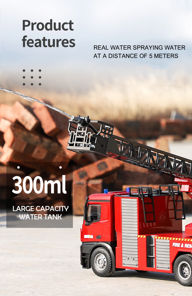 HUINA Toy 1/14 561 Sprayable Scaling Ladder Fire Truck 1561 RC Tractor 2.4G Remote Control Model Car